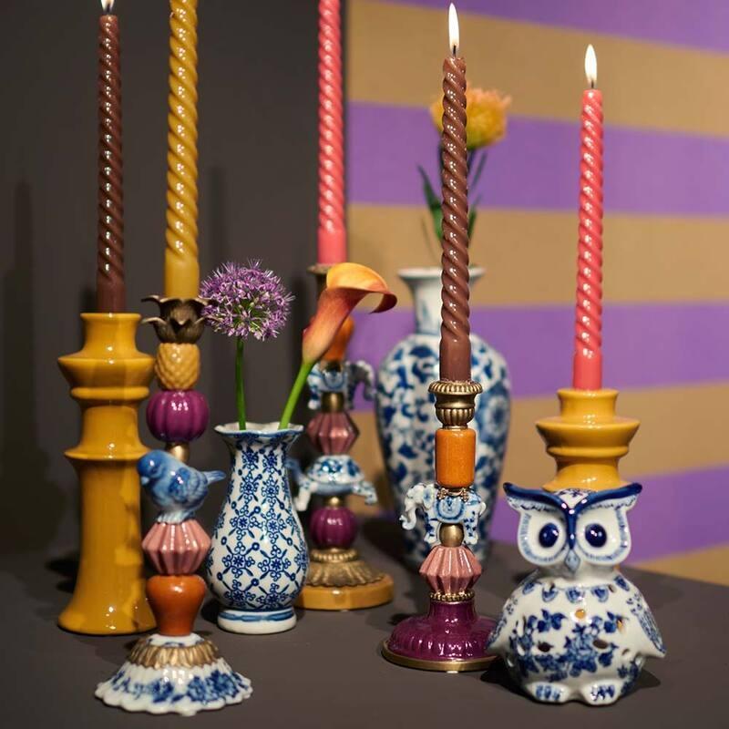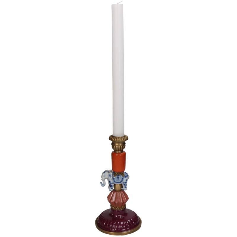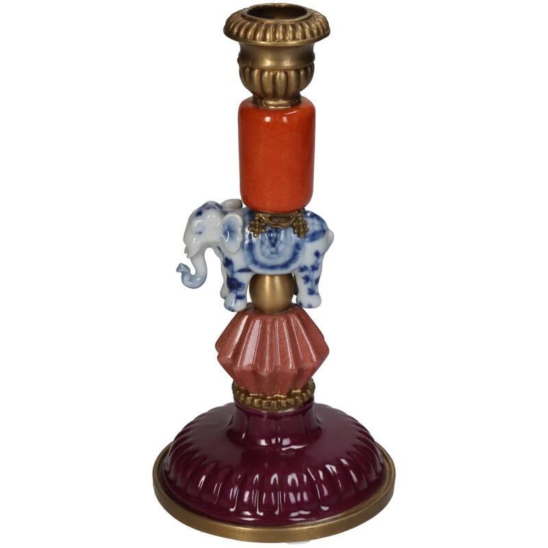 Breng kleur, karakter en een vleugje werelds design in je interieur met de Kandelaar Olifant Multi (H20). Deze bijzondere kandelaar is gemaakt van fijn aardewerk en opgebouwd uit speelse vormen, warme kleuren en een prachtig keramisch olifantje als middelpunt. De mix van glanzende glazuren en goudkleurige details maakt dit item een echte blikvanger op tafel, dressoir of bij een feestelijke tafelschikking. De kandelaar is stevig, handzaam en geschikt voor standaard dinerkaarsen. Perfect voor iedereen die houdt van vrolijke, unieke woonaccessoires die nét even anders zijn.