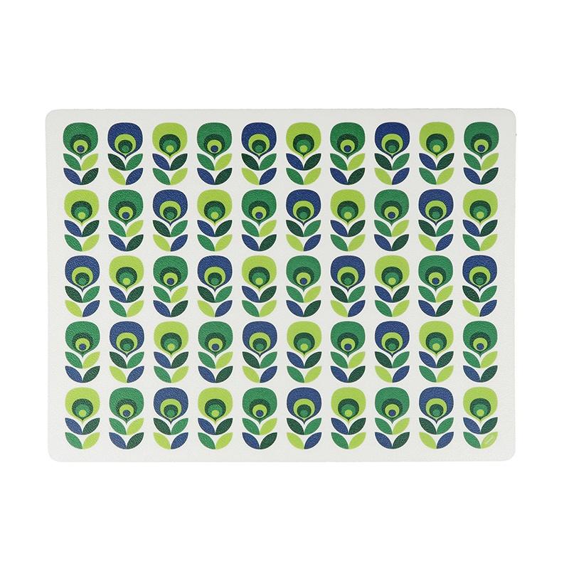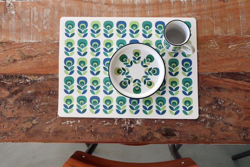 Breng kleur en retro flair naar je eettafel met deze vrolijke placemat van Cabanaz. De LOLA-FLWR Green is voorzien van een speels bloemenpatroon in frisse blauwen en groentinten, gedrukt op een stevige kunststof ondergrond. De placemat is makkelijk schoon te maken, ligt stevig op tafel en is perfect te combineren met de bijpassende mokken en borden van Cabanaz. Of je nu ontbijt, luncht of dineert – deze placemat maakt elke maaltijd net wat leuker.