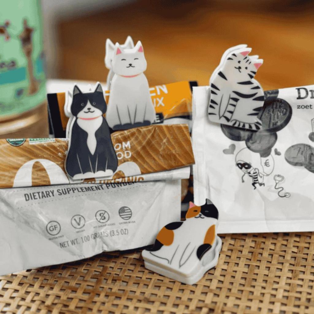 De clips zijn gemaakt van stevig ABS kunststof en hebben een sterke sluiting, zodat zakjes goed dicht blijven zitten. Door het leuke kattenontwerp zijn ze niet alleen praktisch, maar ook een speelse toevoeging in de keuken.