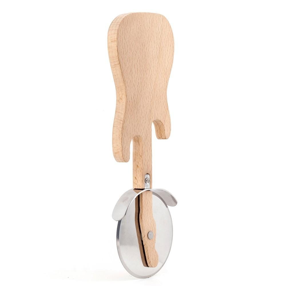Ben je een echte muziekliefhebber en hou je van Pizza's? Deze gitaar is gemaakt van hout en het mes van RVS. Je gitaar gaat dus nooit roesten en kun je met veel plezier gebruiken voor je pizza’s. Door de vorm van deze pizzasnijder ligt hij ook nog eens plezierig in de hand. Was deze pizzasnijder wel even met de hand af en laat hem daarna goed drogen zodat het hout mooi blijft.