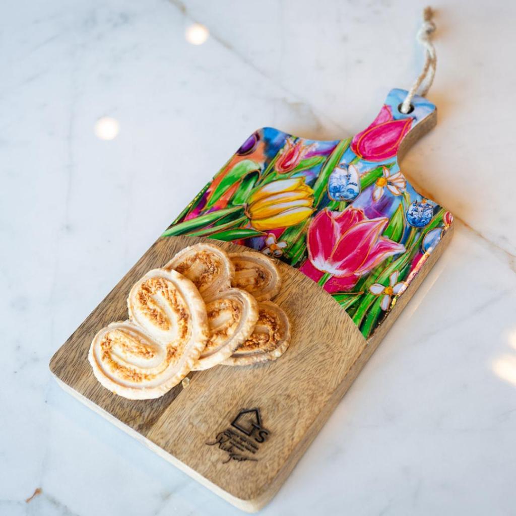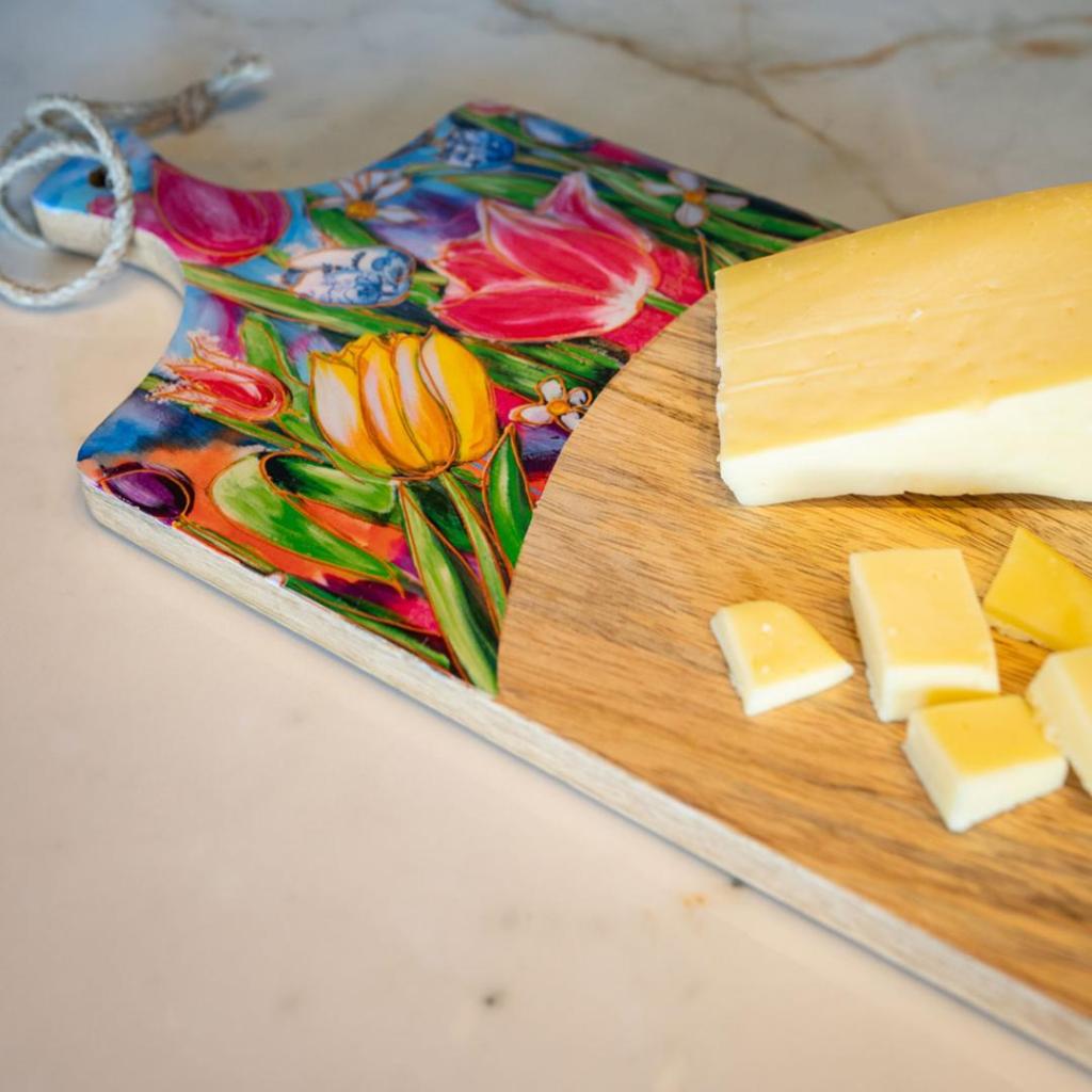 Kaasplank met tulpenillustratie – Dutch Beauty Spring serveerplank met handvat – Rick Triest