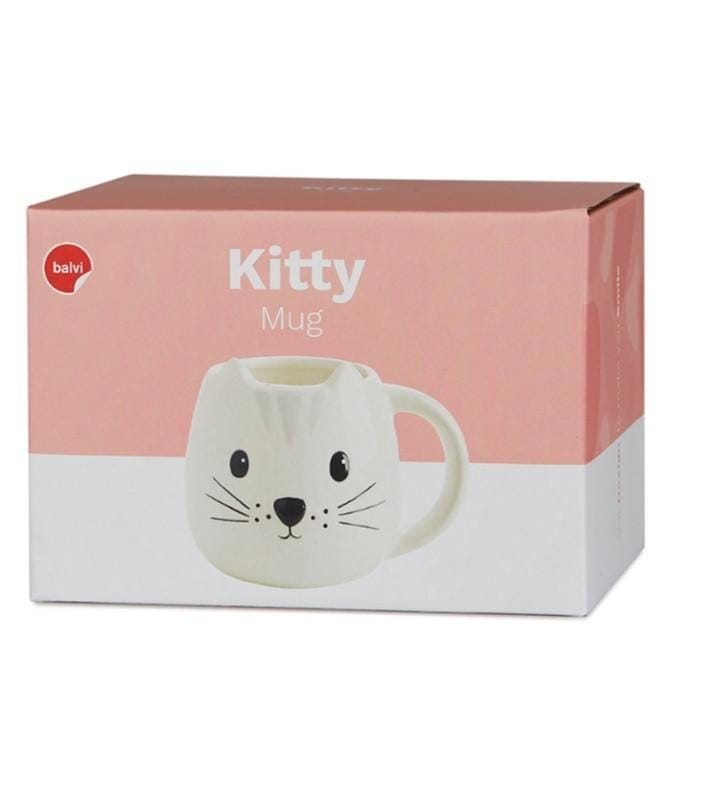 Mok Kitty – Wit – 400 ml – Handgeschilderd Keramiek – Balvi
