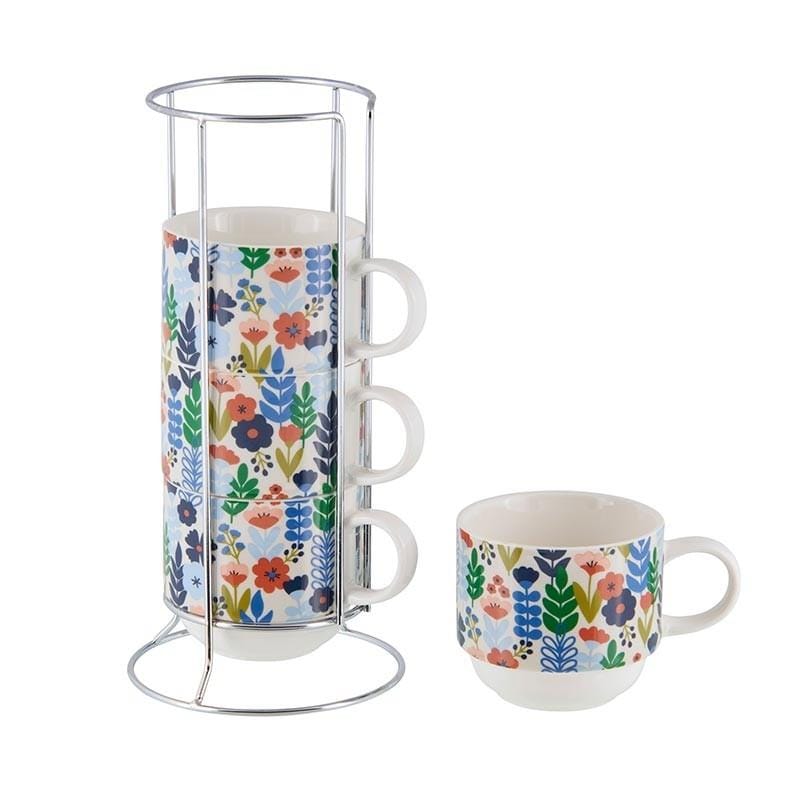 Dit leuke rekje met de vier bloemige porseleinen mokken is een absolute aanwinst voor in je keuken. Ze zien er superleuk uit op je aanrecht of open kast en je kan de vier mokken makkelijk in een keer verplaatsen wanneer je bijvoorbeeld in de tuin of woonkamer koffie of thee wilt gaan drinken. De mokken zijn gemaakt van porselein, wat ze extra stevig maakt, en het drinkt extra fijn.