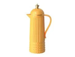 Thermoskan Crown – Helder Geel met Gouden Kroontje – 1 Liter – H. 34 cm – Retro Design – PT