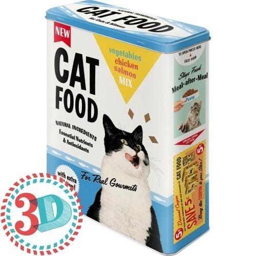 Laat je katten hart sneller kloppen met dit XL 3D Cat Food blik! Het levendige ontwerp met een speelse kat maakt dit blik een echte eyecatcher in elke keuken. Perfect om kattenvoer, snacks of speeltjes op te bergen. Een must-have voor elke kattenliefhebber.