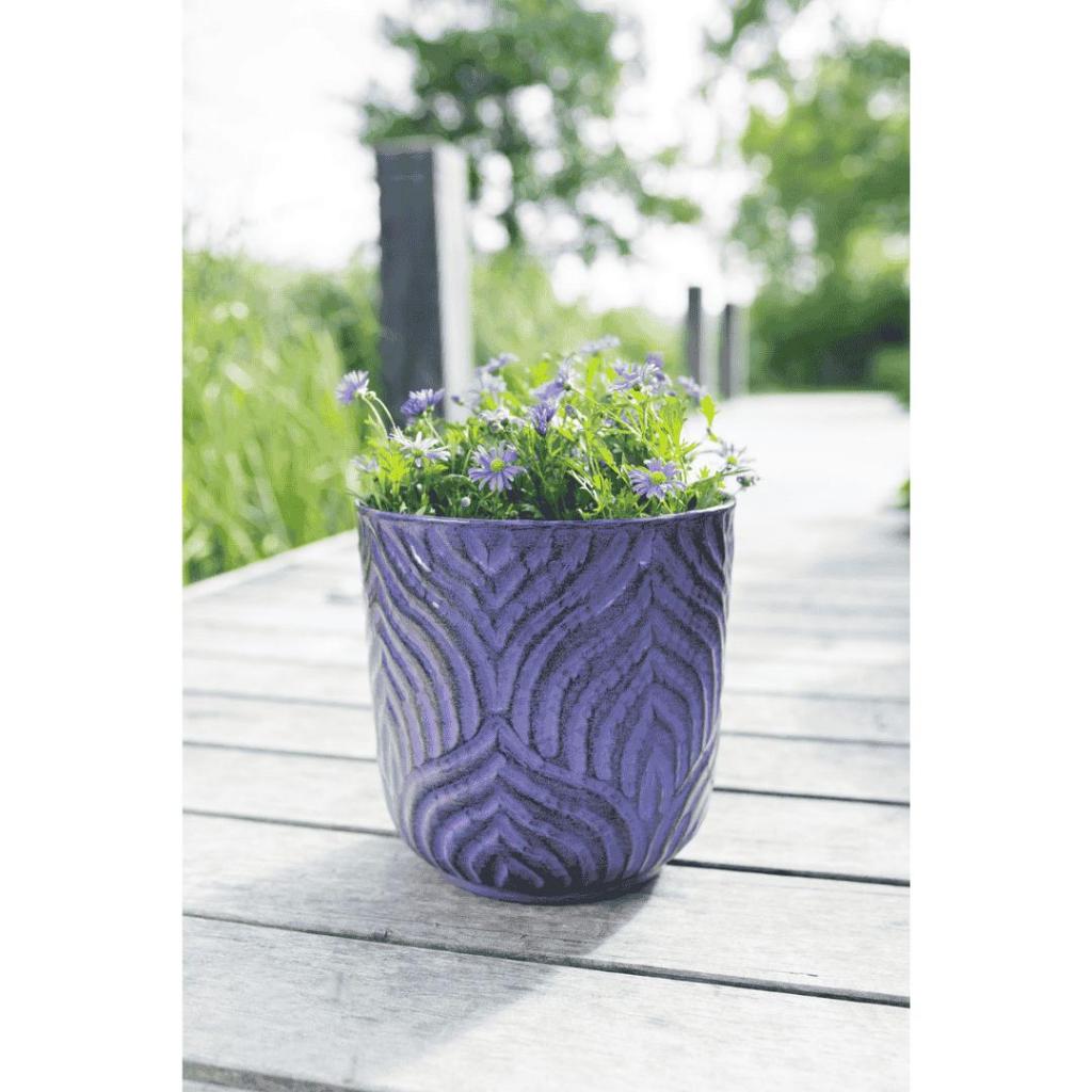 Met de bloempot Jessie geef je jouw tuin of balkon een stijlvolle upgrade. De diepe paarse kleur in combinatie met het reliëfpatroon en de glanzende epoxylaag zorgt voor een moderne en luxe uitstraling. Jessie is onderdeel van de Metal-serie, gemaakt van metaal en daardoor licht van gewicht maar toch sterk. Dankzij de handige plug in de bodem kan de pot zowel binnen als buiten gebruikt worden. Met een formaat van D27 × H27 cm biedt deze bloempot voldoende ruimte voor een middelgrote plant.