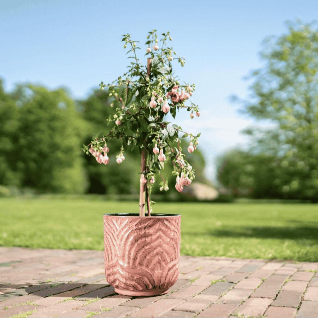 De bloempot Jessie in roze is een elegante toevoeging aan je interieur of buitenruimte. Het reliëfpatroon geeft de pot een speels karakter, terwijl de glanzende epoxylaag zorgt voor een moderne en luxe uitstraling. Omdat Jessie gemaakt is van metaal, is ze lichtgewicht maar toch stevig. Dankzij de geïntegreerde plug in de bodem kan de pot zowel binnen als buiten gebruikt worden. Met het formaat D23 × H23 cm is deze bloempot ideaal voor kleine tot middelgrote planten.