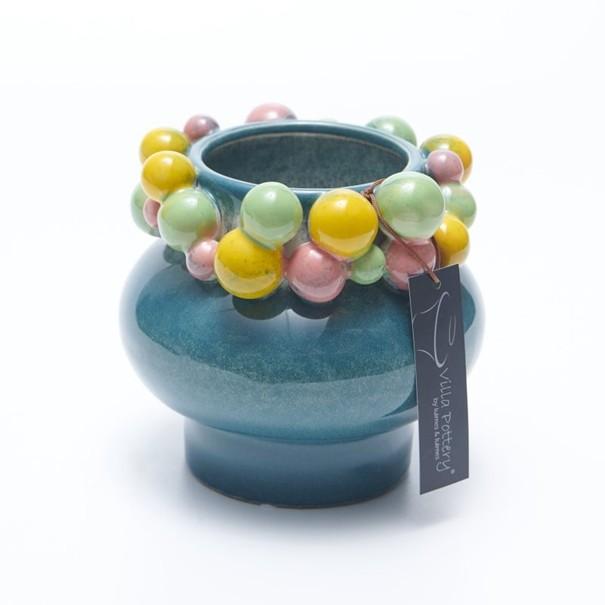 De Piccadilly 2 Blauw is een verfrissende toevoeging aan onze collectie. Deze handgemaakte keramische bloempot is bedekt met een fris blauw glazuur en versierd met een speelse kraalrand in vrolijke kleuren. De combinatie van de ronde vormen en de levendige kleuren zorgt voor een vrolijke en energieke sfeer.
