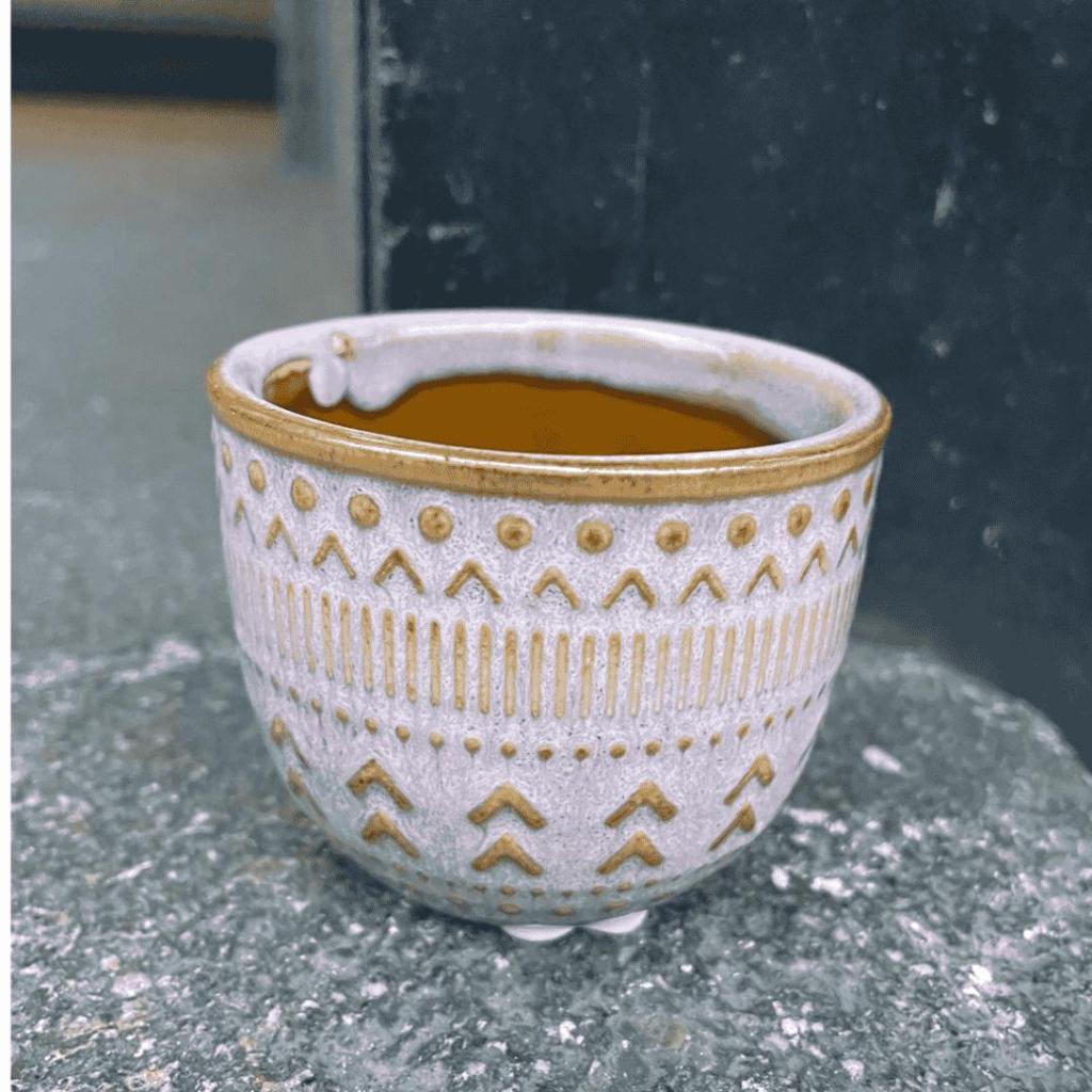 Superleuke kleine potjes voor cactussen of andere miniplantjes. De set bestaat uit 6 verschillende kleuren en motieven. Bij ons kan je ze los bestellen, dus je kan kiezen welke kleur het beste matched bij jouw interieur. Ook leuk om meerdere planten en potten bij elkaar te zetten. Mix en match met de andere bloempotten uit ons assortimen. Deze kleine keramische potten zijn 6cm. hoog en Ø 7,5cm.