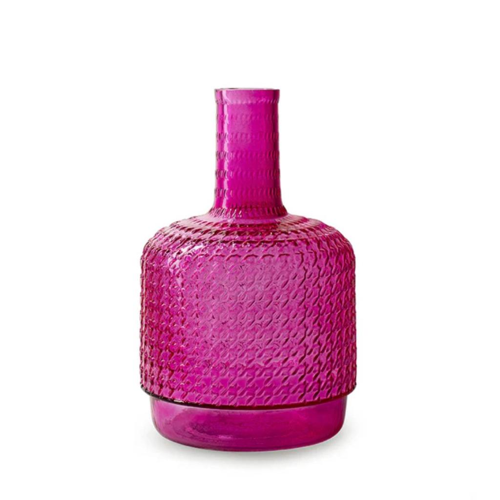 Flesvaas Sari Fuchsia – Glazen Flesvaas met Reliëf van Jodeco Glass (H27 cm)