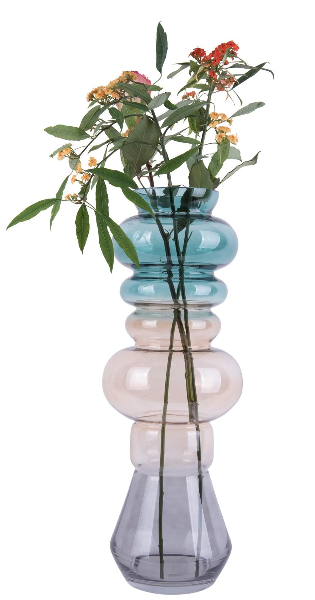 Present Time heeft zichzelf overtroffen met deze prachtige serie glazen vazen. Vormen die doen denken aan de vormgeving van de Italiaanse Memphisstijl uit de jaren '80 van de vorige eeuw. Deze Morgana is maar liefst 50cm hoog en daarmee uitermate geschikt voor bloemen met lange stelen zoals Amaryllissen en Lelies. Het doorzichtige glas is gekleurd in verschillende pasteltinten.