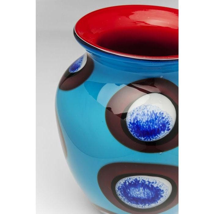 Deze schitterend uitgesproken vaas verdient een ereplaatsje in je kamer. Je moet er wel de ruimte voor hebben, wat de vaas is behoorlijk aanwezig. De vaas heeft eigenlijk geen bloemen nodig, maar een mooi, groot, rond boeket met veel rode tinten zal er ongetwijfeld prachtig in staan. Rotterdammers boffen; zij kunnen de vaas gelijk laten opmaken door Bloembinderij Geschikt.