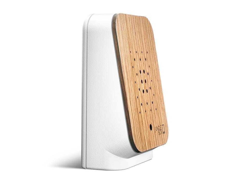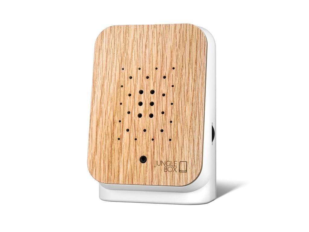 Ervaar de Junglebox, vervaardigd met fijn eikenhout, een charismatisch designfront uit duurzame bosbouw. Elk houten front is uniek, waardoor elke box een eigen uitstraling krijgt. Laat je meevoeren naar het tropisch regenwoud met natuurlijke geluiden geïnspireerd op Maleisië. De soundscape duurt 120 seconden en brengt de oproepen van Siamang Gibbons en Mangrove Pittas tot leven.