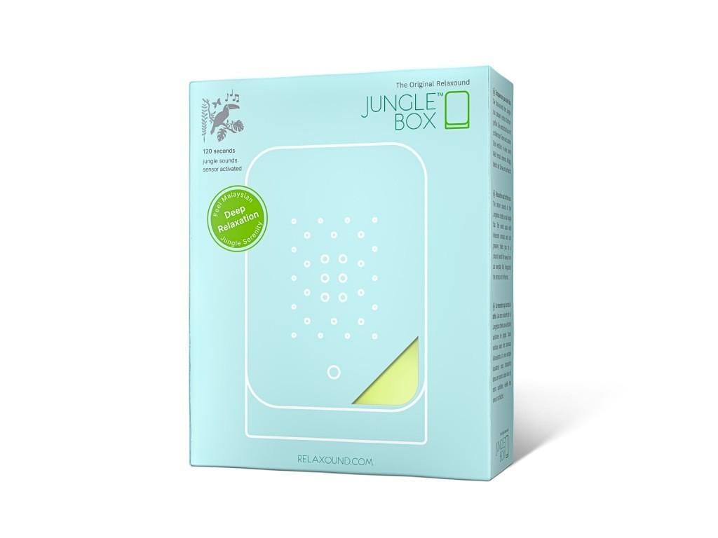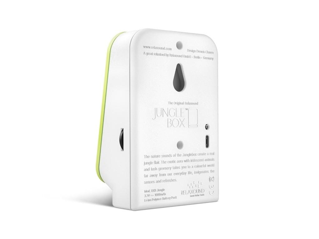 Stap in een tropisch regenwoud met de Junglebox Lush van Relaxound. Deze stijlvolle geluidsbox activeert bij beweging een rustgevend junglegeluid van 120 seconden – compleet met fluitende vogels, zoemende insecten en zachte natuurgeluiden. Het compacte design in frisgroene kleur past moeiteloos in elke ruimte: van badkamer tot werkplek. Dankzij de oplaadbare batterij en ingebouwde sensor geniet je overal van een moment ontspanning zonder gedoe met snoeren. De Junglebox is ontworpen in Duitsland en geeft een zintuiglijke pauze tijdens drukke dagen. Zet 'm in de hal, het toilet of naast je bed, en laat je meenemen naar de jungle.