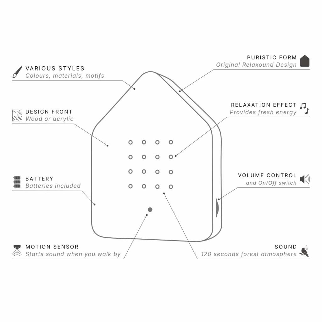 De Relaxound Zwitscherbox Morning Forest – Limited Edition vangt precies dat magische moment waarop de ochtendmist tussen de bomen hangt. Het zachte kleurverloop en de diepgroene dennen maken dit ontwerp een prachtige eyecatcher voor iedereen die van rust en natuur houdt. Deze Zwitscherbox is onderdeel van de exclusieve serie “Landscapes” en wordt geleverd met een officiële editie-stempel. Wanneer je langsloopt, activeert de bewegingssensor 120 seconden bosgeluiden: fluitende zangvogels, lichte bries, een ontspannen ochtendsfeer die meteen rust brengt. Ideaal voor elke ruimte waar je net wat meer ontspanning kunt gebruiken: de hal, badkamer, keuken, woonkamer of kantoor. Je kunt de Zwitscherbox neerzetten of ophangen, en dankzij het batterijgebruik ben je niet afhankelijk van stopcontacten. Compact, sfeervol en direct rustgevend.