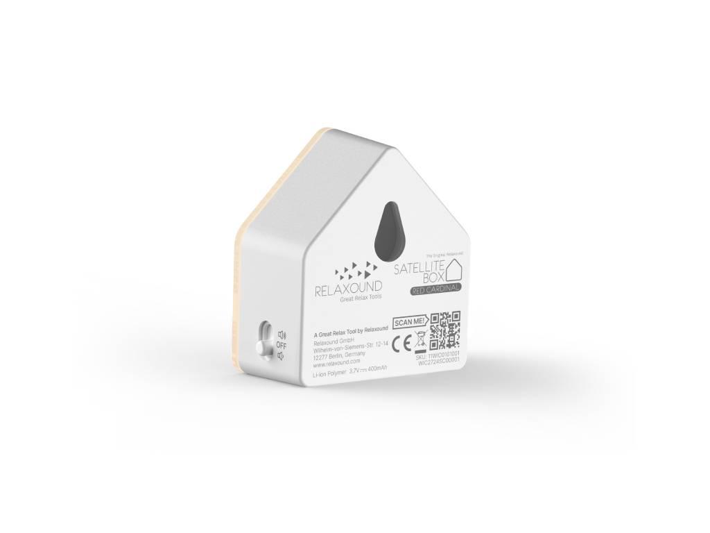 De Relaxound Satellitebox Red Cardinal Classic brengt rust en een vleugje natuur in huis. Zodra je voorbijloopt, activeert de bewegingssensor het zachte en vrolijke geluid van de rode kardinaal. De opname duurt 60 seconden en zorgt voor een kalm moment in drukke ruimtes zoals de hal, badkamer, keuken of je thuiswerkplek.
