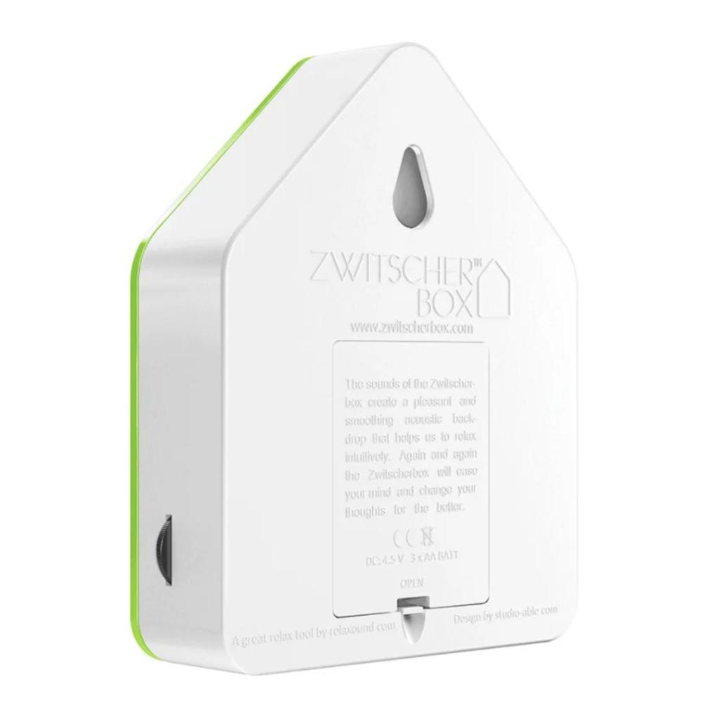 De natuurlijke klanken van de Zwitscherbox creëren een sfeer waardoor je je beter gaat voelen en ontspannen. Het is altijd een verrassing hoe het onze gedachten kan veranderen en ons onze zorgen kan doen vergeten. Thuis of op kantoor laat het vrolijke getjilp van vogels ons even in een wereld duiken zonder stress en tijdsdruk. We ademen en komen tot rust, zoals bij een boswandeling.
