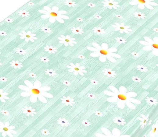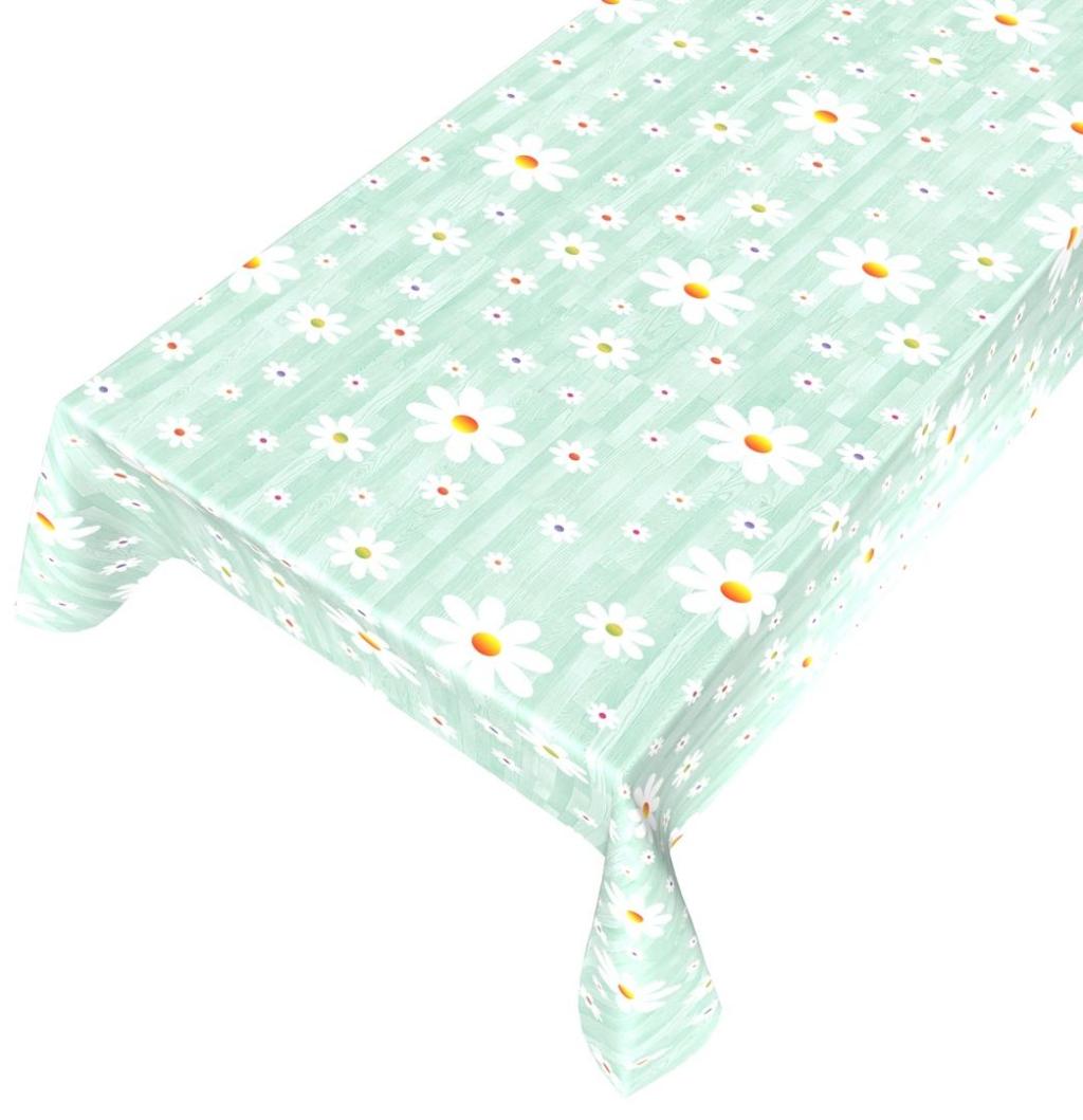 Tafelzeil Madelein – Grijs zeil met vrolijke margrietjes, 140 cm breed, per 10 cm van de rol
