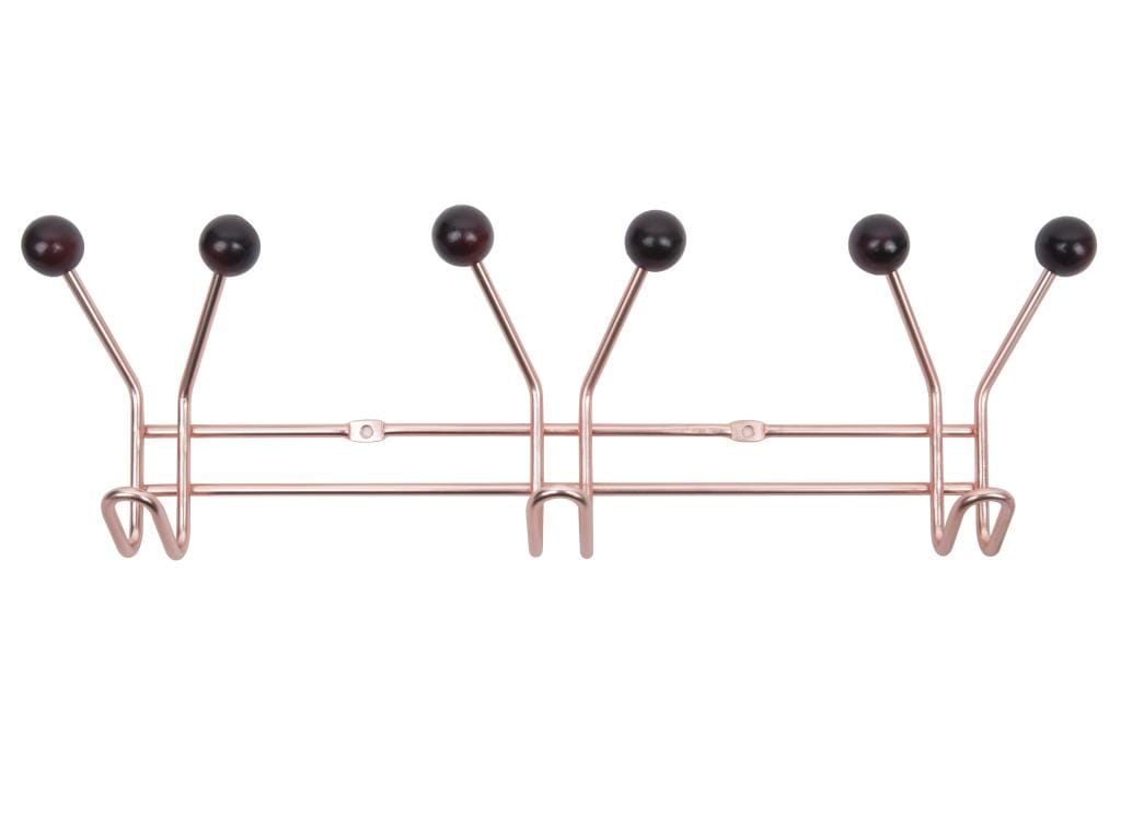 Kapstok Jupiter – Koperkleurig Metaal met Zwarte Bollen – 9 Haken – 43 x 13,5 x 6,5 cm – Present Time